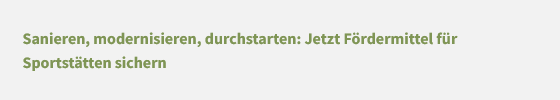 Gefördert werden also umfassende Sanierungen oder Modernisierungen, etwa mehrerer Plätze, von Gebäuden oder kompletter Anlagen – keine kleineren Einzelmaßnahmen.