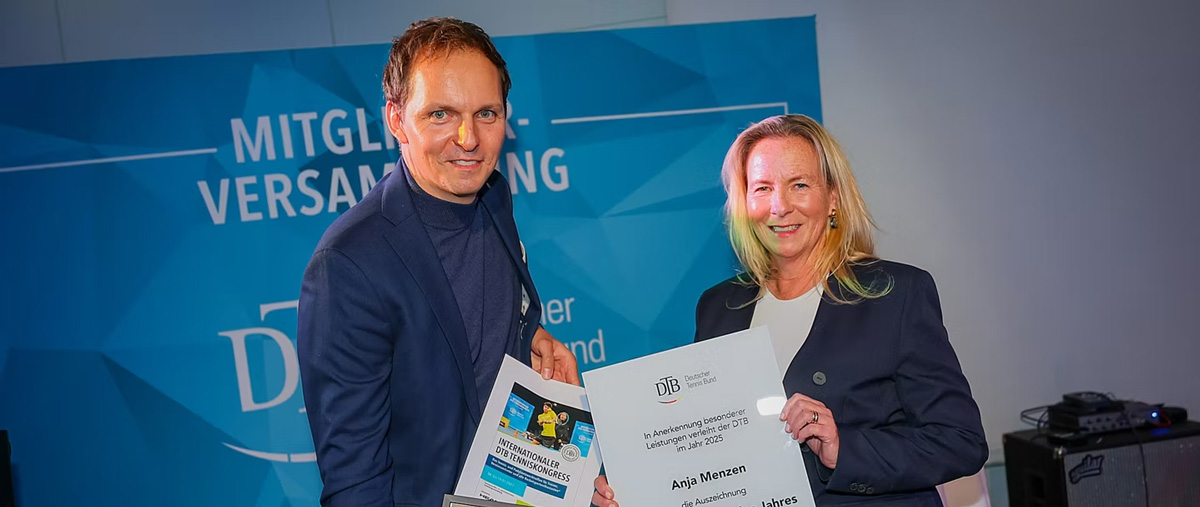 Im Rahmen der DTB-Mitgliederversammlung im November wurde Anja Menzen vom SC Frankfurt 1880 zur „Vereinstrainerin des Jahres 2025 presented by Tannenhof“ gekürt. Geehrt wurde die 58-Jährige vor allem für ihre herausragende Arbeit und ihr Engagement auf und neben dem Platz.